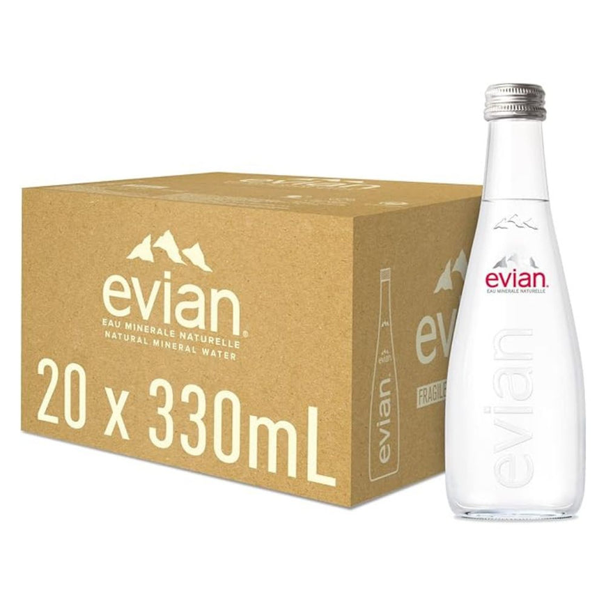 Evian Natural Mineral Water Glass Bottles - (20x330ml)