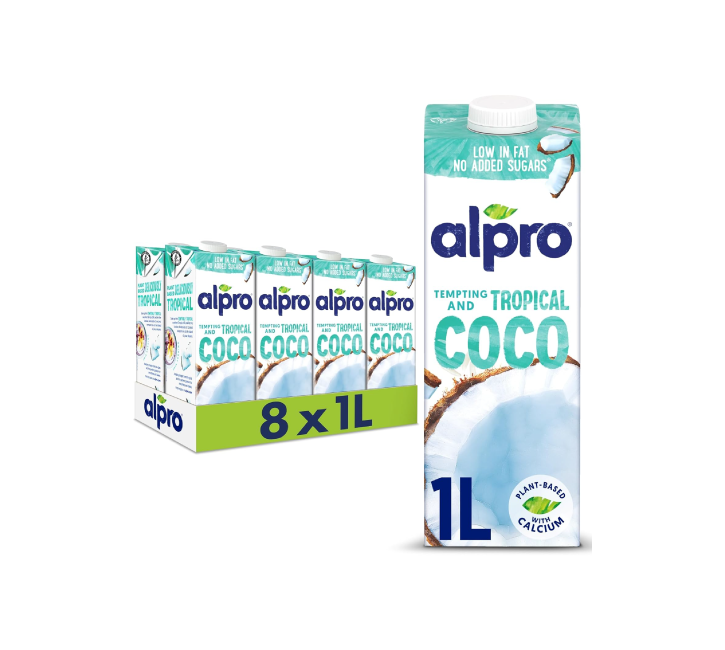 Enjoy the tropical taste of Alpro Coconut Milk (8x1L), provided in a 8x1L pack. This plant-based drink is naturally lactose-free and low in fat, making it a refreshing alternative for your daily beverages. Enriched with calcium and vitamins D and B12, it's suitable for various dietary preferences. Perfect for families and individuals seeking a dairy-free option.